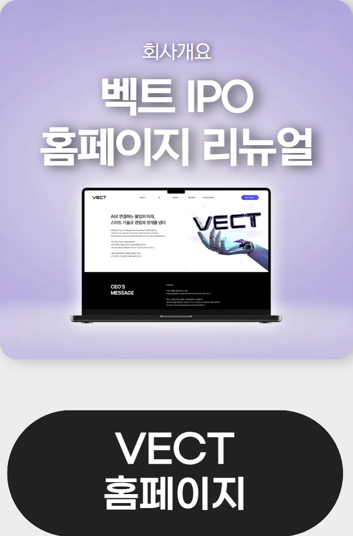 2026 벡트 뉴스레터 2월호 최고관리자 0 36 02.02 14:52 *상단 텍스트 클릭 시, 해당 소식과 관련된 보도자료를 확인하실 수 있습니다. *상단 배너 클릭 시, 블로그에서 참가 후기를 확인하실 수 있습니다. *상단 배너 클릭 시, IPO 홈페이지에서 회사개요 페이지를 확인하실 수 있습니다. *상단 배너 클릭 시, 블로그에서 업데이트 소식을 확인하실 수 있습니다.